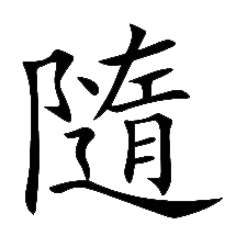 This character has similar structure to lián. It also contains the glyph for 'ear' and can be thought of 'moved towards/by music' and is said to have a 'Yin' quality Names the 17th hexagram of the I Ching - "Following" |