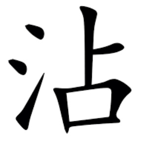 This character has a glyph on the left for 'water' instead of 'rice' as a differentiation from zhān. The suggestion has been made to substitute in order to signify a kind of gently/naturally penetrative touch. Water is a consistent conceptually powerful image, in this case the adhesive quality is highlighted. |